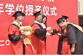 曲义勇和院领导,为300名毕业生颁发学位证书,拨穗正冠,扶正流苏,合影留念。