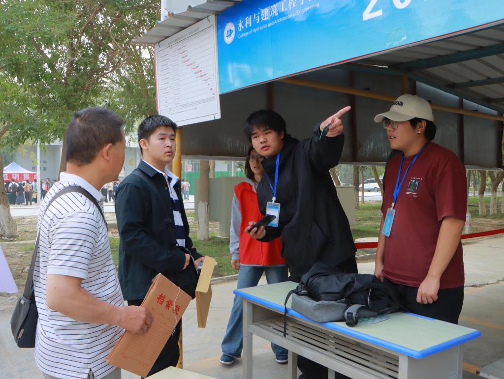 随着第一班接站大巴驶入南大门,志愿者迅即形成“人力传送带”——接水、递扇、提箱、引导,动作一气呵成;一声声“同学里边请”“家长您放心”此起彼伏,红马甲在胡杨林间跳跃,仿佛晨曦里最鲜活的火焰。休息区内,姜枣茶香氤氲,志愿者十指翻飞,为远道而来的家长斟茶续杯;行李寄存点,平板车穿梭如织,却听不到一次碰撞——所有弯道提前铺设防撞条,“无声服务”赢得家长频频颔首。