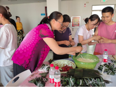 活动现场,公司教职工、家属和员工代表等聚在一起包粽子聊家常,学习如何拿捏粽叶、放糯米、系稻草绳,聊端午节的来历、风俗,活动现场欢声笑语不断,三角粽、四角粽、锥形粽……各式各样的漂亮粽子在老师员工们手中诞生,参加活动的教职工和员工们均感受到浓浓的节日气氛以及原汁原味的中国传统文化,共同度过了一个喜悦祥和的端午节。