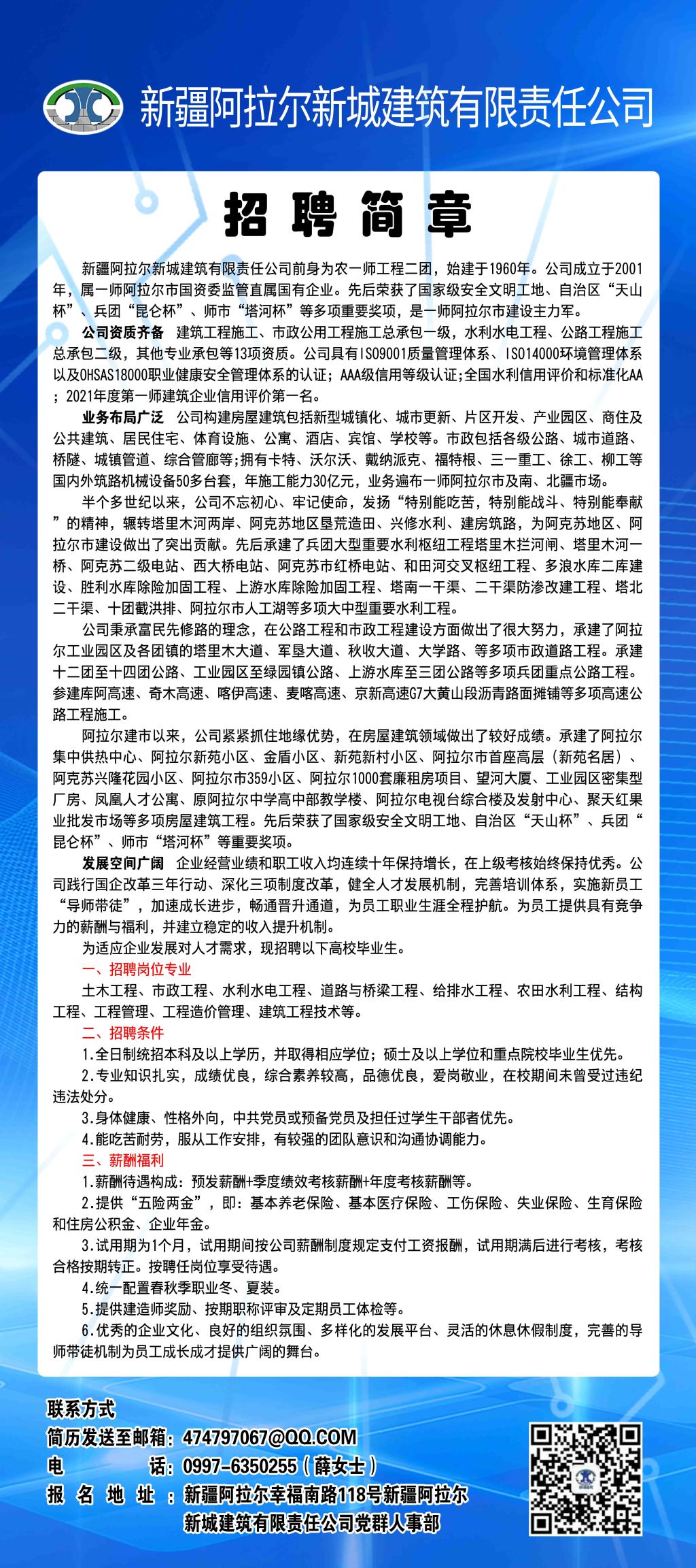 新疆阿拉尔新城建筑有限责任公司招聘简章