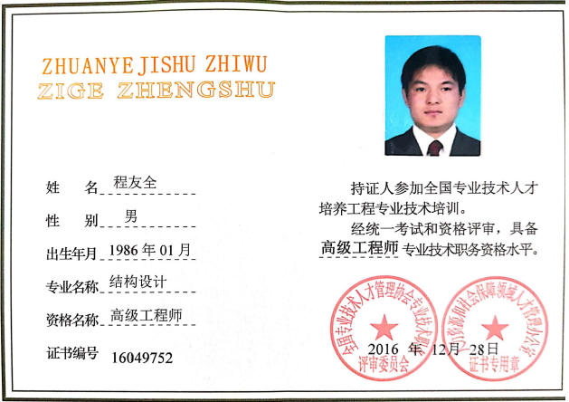 附公司主要管理人员证书
